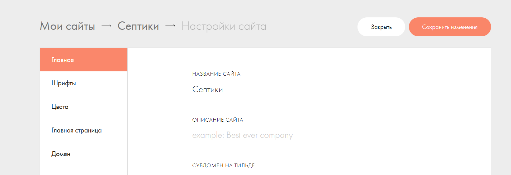 - В верхнем меню выберите Site Settings (Настройки сайта).